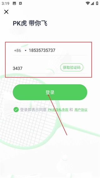 3、进入登录页面后,先输入账号,接着点击【获取验证码】按钮,待收到验证码并填入后,点击【登录】按钮,就能完成账号登录流程。