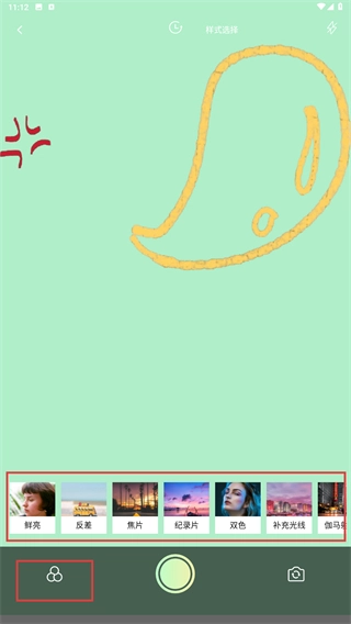 2、进入样式选择界面后,可从底部模板栏里挑选目标样式,将其应用到拍摄效果上。