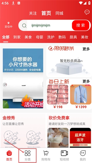 1、在首页,点击底部导航栏中的【分类】选项,即可进入商品分类页面。