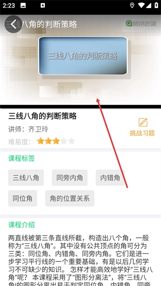 3、在课程列表里找到并点击目标课程(例如【三线八角的判断策略】),即可进入该课程的详情页面。