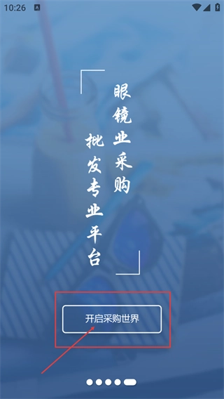 1、点击【开启采购世界】进入【眼镜业采购-批发专业平台】,这是进入眼镜采购资源池的第一步操作,能启动后续的供应商筛选流程。