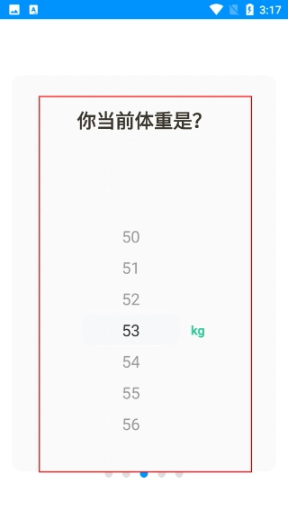 4、在当前的体重选择页面,选择对应的【53-kg】体重数值,完成这一步后,初期个人信息填写流程就可以结束了。