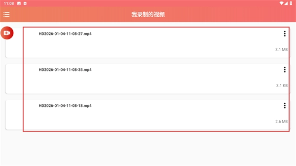 4、进入“我录制的视频”页面后,能够查看所有录制文件的名称和大小,并借助对应的操作选项来管理录屏文件。