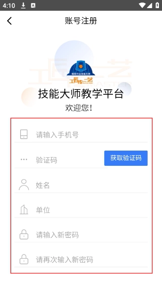 3、在【账号注册】页面,需依次填写【号】,获取并输入【验证码】,接着填写【姓名】和【单位】,最后设置并确认密码,即可完成注册。