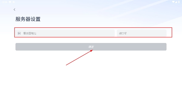3、进入服务器设置页面后,在相应的输入框中填写服务器地址,确认信息无误后点击【确定】按钮,即可完成设置。