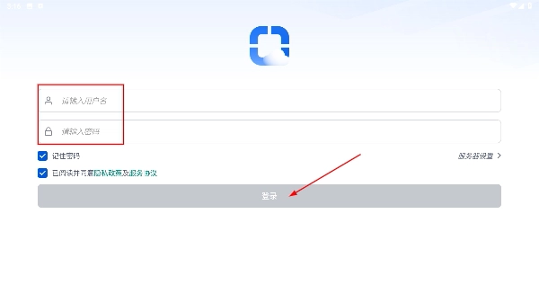2、进入登录界面后,按顺序填写用户名和密码,确认协议已勾选,然后点击【登录】按钮进行登录尝试。