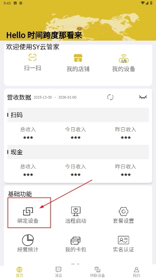 1、在基础功能板块中,点击【绑定设备】选项,以启动后续的操作流程。