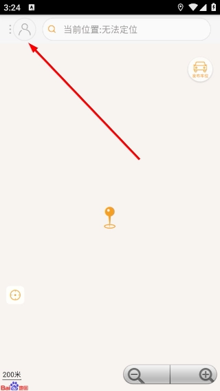 2、进入主界面后,点击左上角的头像图标,即可进入登录相关操作页面;界面还会显示当前位置的定位状态。