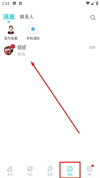 4、发送消息后,切换至“消息”页面,即可在消息列表里查看与该对象的聊天记录。