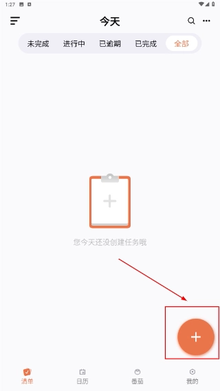1、在任务列表界面,点击右下角的橙色加号按钮,会弹出任务创建相关的选项。