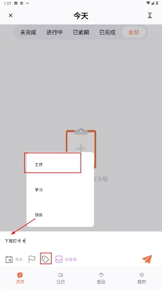 2、在弹出的选项里选择任务类别(例如“工作”),即可进入该任务类别的编辑环节。