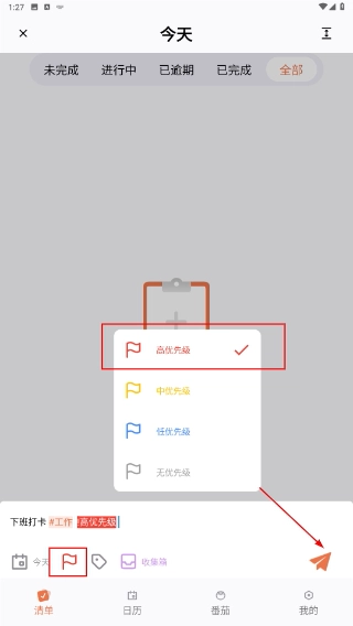 3、挑选任务对应的标签(例如“高优先级”),在确认设置无误后,点击发送类按钮,即可完成任务的创建。