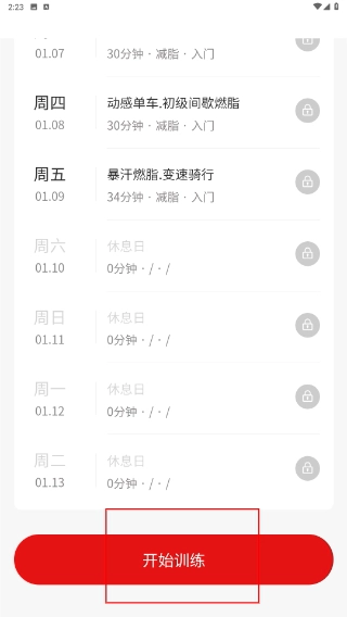 4、在课程列表页面,选定对应的训练内容后,点击“开始训练”按钮,即可启动相应的训练课程。