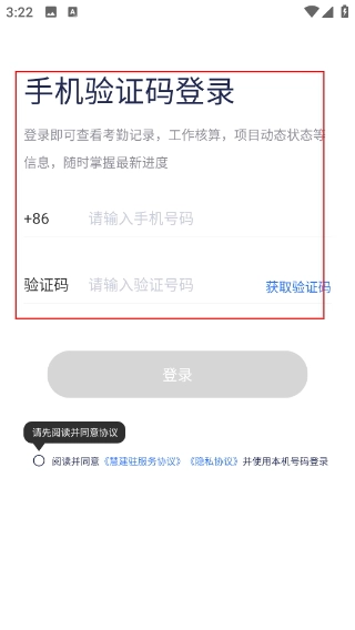 2、进入【验证码登录】页面,先填写【请输入号码】栏,点击【获取验证码】后填写【请输入验证码】栏,即可激活【登录】按钮。