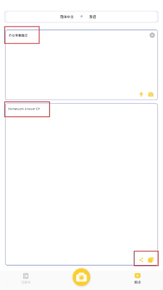 4、翻译完成后,可通过查看下方的英文内容进行学习,还能点击右下角的【分享】【复制】等按钮进行相应操作。