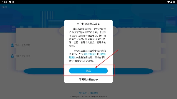 1、当【用户协议和隐私条款】的窗口弹出后,请仔细阅读其中的相关内容,随后点击【同意】按钮,以此完成协议确认的流程。