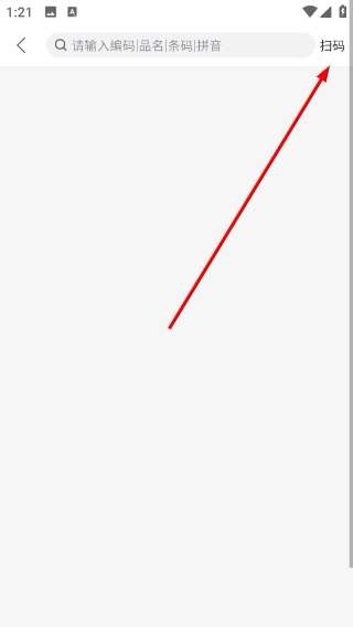 4、进入商品检索界面后,可通过输入编码、名称等信息,或点击“扫码”按钮扫描商品条码,快速查找目标商品。