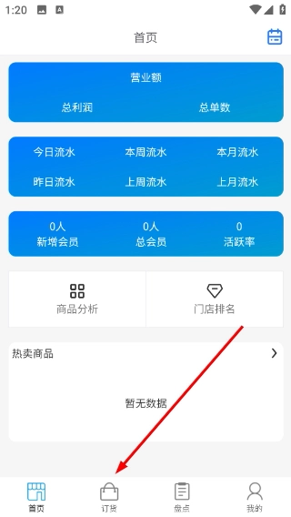 1、在门店管理应用的首页,点击底部的“订货”选项,就能进入订货列表页面,处理与订货相关的各项事务。