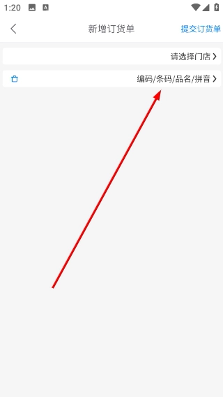 3、在新增订货单页面,点击商品搜索框,即可进入商品检索界面,从中选择需要订货的商品。