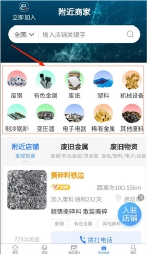 3、点击附近商家可以查看最近的商家废品报价