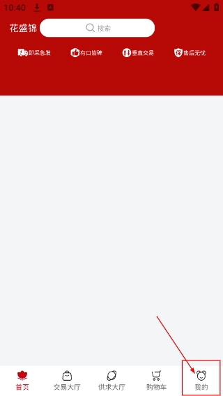 1、打开“花盛锦”首页后,点击底部导航栏中的【我的】按钮,即可进入个人中心页面。