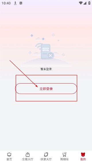 2、进入个人中心页面后,点击【立即登录】按钮,即可进入登录操作界面。