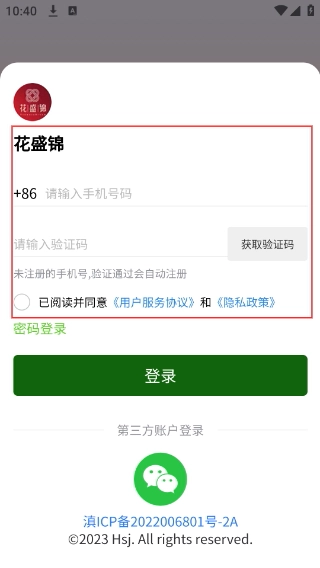 3、登录界面默认采用验证码登录方式:先填写号码,点击【获取验证码】按钮并输入收到的验证码,最后点击【登录】即可。