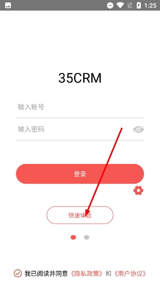2、进入【35CRM】登录页面,除了通过账号密码登录外,点击【快速体验】按钮就能进入体验登录界面。