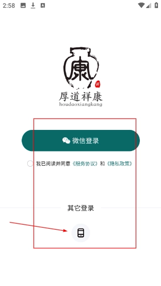2、进入登录页面后,既可以选择【微信登录】,也能点击【其它登录】来切换登录方式,不过在此之前需要先勾选同意【服务协议】和【隐私政策】。