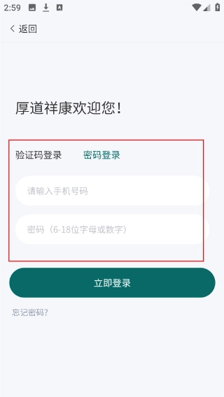 4、进入密码登录页面,在【请输入号码】栏填写对应信息,并设置符合【6-18位字母或数字】要求的密码,随后点击【立即登录】按钮;若忘记密码,可通过找回功能进行重置。