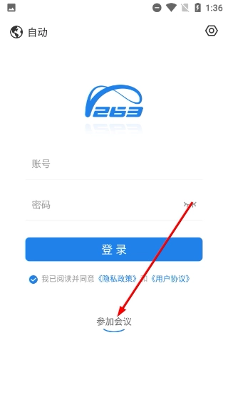 2、进入登录页面后,要是不需要用账号登录,点击【参加会议】按钮就能切换到会议加入界面。
