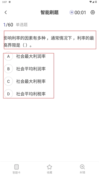3、进入题目页面后,阅读单选题的题干(例如与“影响利率的因素”相关的题目),然后选择对应的选项来完成答题。