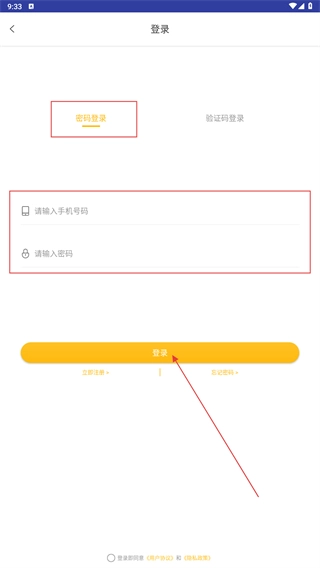 3、选择【密码登录】选项,输入对应的号码和密码,勾选相关协议后点击【登录】按钮,即可完成账号登录操作。