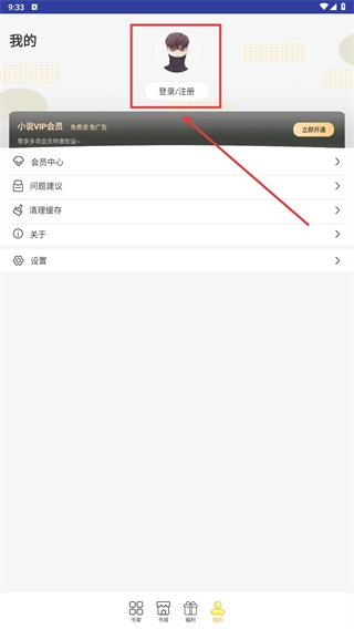 2、进入【我的】页面,点击【登录/注册】区域,页面会跳转至登录界面。