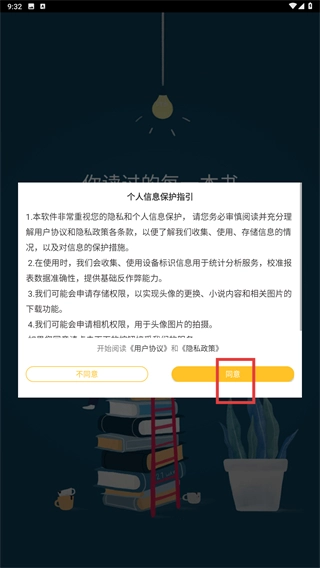 1、第一次打开App时,先阅读《个人信息保护指引》,然后点击“同意”按钮,即可进入应用的主流程。