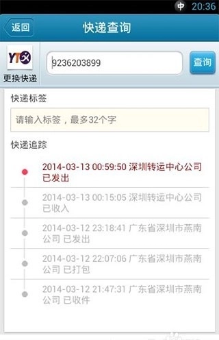 9、扫描后会跳转到快递公司选择,选择快递单上的快递公司后直接进入物流详情页面。