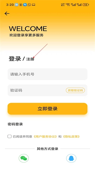 3、进入登录界面后,能看到账号验证码的输入区域以及其他可选的登录方式,接下来就可以准备开展账号登录的相关操作了。