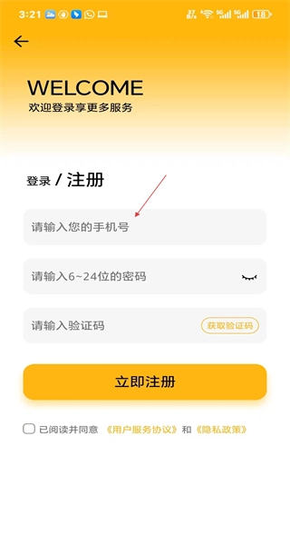 4、进入注册页面,填写好密码等相关信息,勾选协议后点击立即注册,即可完成账号注册。