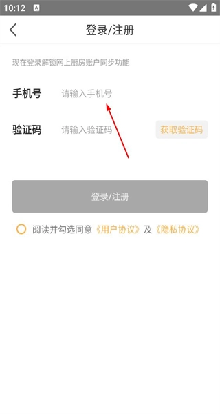 3、进入登录注册页面后,找到账号验证码输入区域,勾选相关协议,即可填写信息完成登录或注册操作。