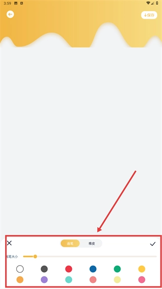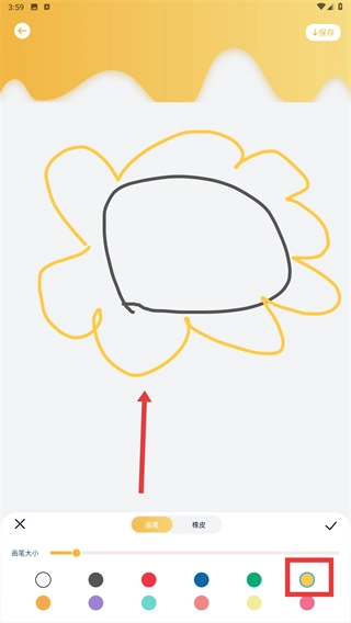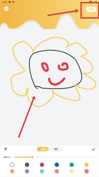4、完成创作后,点击右上角的【保存】按钮,把涂鸦作品保存到设备里,这样就完成了整个创作流程。
