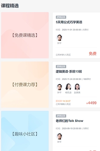 2、优质学习体验:有道逻辑英语汇聚资深名师,提供直播与录播课程,搭配电子课件、精美纸质教材、专属答疑老师及助教督学等一站式服务,打造全方位学习场景,助你轻松畅享上百节免费在线公开课。