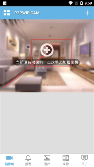 1、打开【P2PWIFICAM】主界面,若当前未连接任何摄像机,点击界面上的加号按钮,就能启动添加摄像机的操作流程。