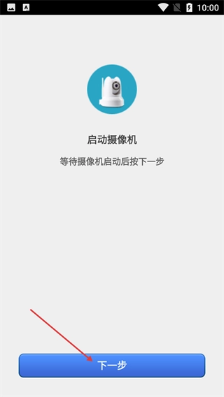 3、进入【启动摄像机】页面,待摄像机启动完成后,点击底部的【下一步】按钮,就能继续进行后续的连接配置流程。