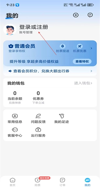 2、点击“我的”页面,找到登录或注册入口,进入账号管理相关操作,即可查看会员权益等内容。