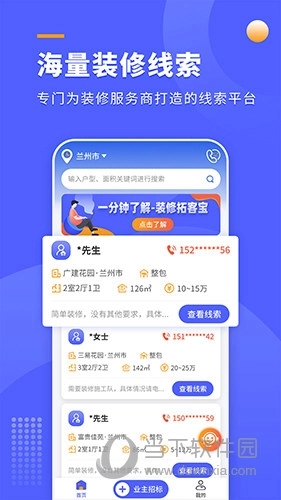1、打开装修拓客宝,在首页里你能够借助预约线索、活动线索、团装线索来获取客户;