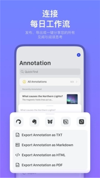 -支持对收藏或标注内容进行批量导出; -Notion、Readwise可自动同步收藏内容,实现一次收藏、多端备份。