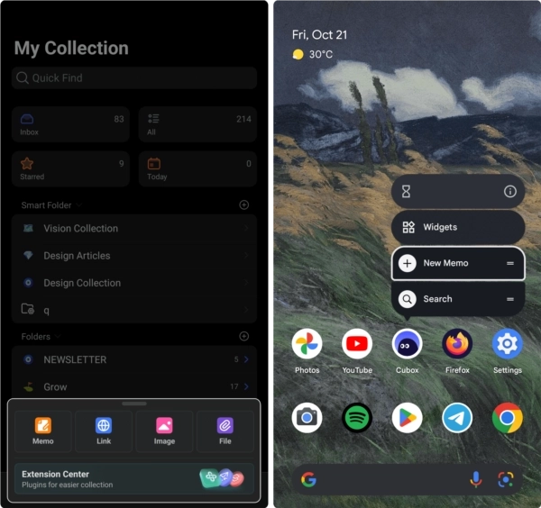 Cubox配备了覆盖多平台的多样收集插件,能够高效录入来自不同渠道的信息。