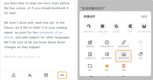 你可以通过阅读器菜单里的“重新生成快照”功能,获取网页最新的快照存档,这也能解决部分快照可能丢失的问题。