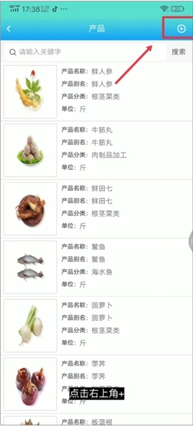 6、进入后点击产品界面右上角的+号按钮
