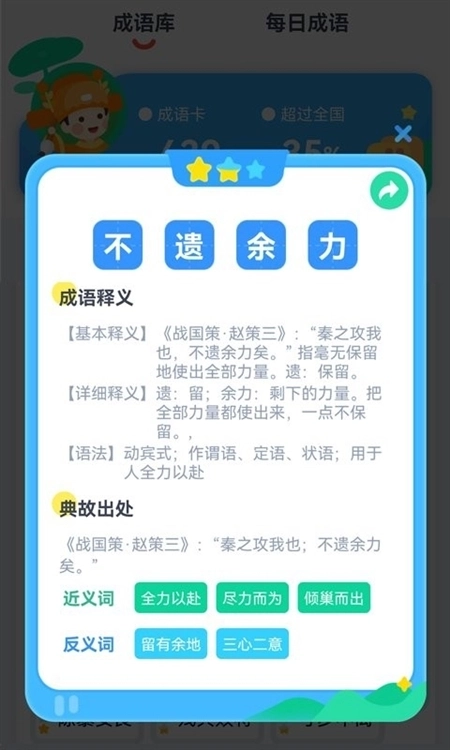 全程无弹窗广告与诱导付费内容,致力于营造纯净学习空间,助力用户专注积累成语知识。
